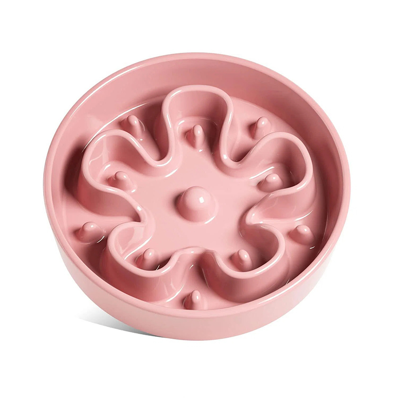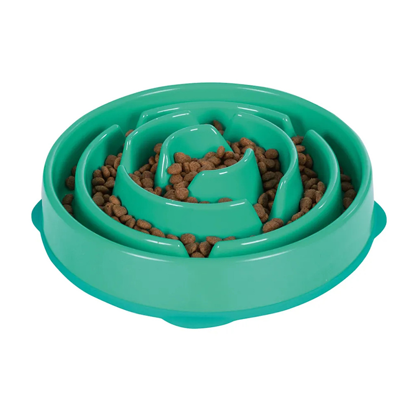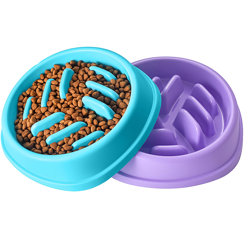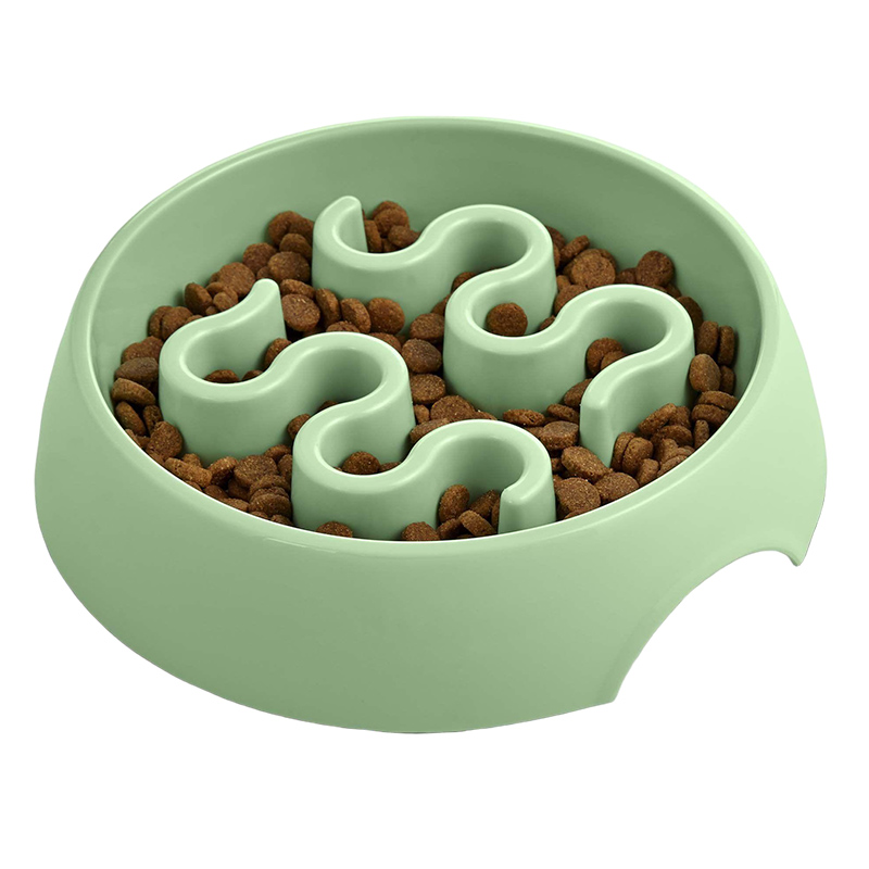 Miski dla psów labiryntówMa wzór przypominający labirynt i podniesione struktury, które skutecznie spowalniają prędkość jedzenia zwierzaka, wydłużenie ich średni czas jedzenia do 2-3 razy większej niż zwykła miska dla zwierząt domowych. Pomaga to zapobiec wymiotom, niedomykacji i rozszerzeniu żołądka, które może wystąpić, gdy zwierzak „przełęży” ich żywność.